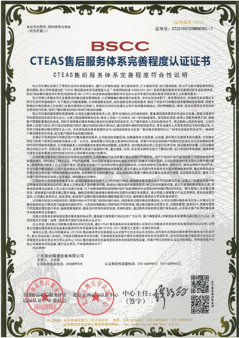 CTEAS售后服務(wù)體系完善程度認(rèn)證-七星級(jí)(卓越)